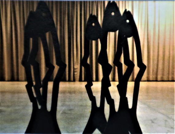 "Meefischli" von Kathrin Hubl (Oerlenbach) - "Auch auf Margetshöchheimer Festen wird der Meefisch als fränkische Spezialität gepflegt. Dargestellt werden 5 identische zweidimensionale Skulpturen. Von jedem Standpunkt her erscheint ein neues Bild von Überschneidungen und Verschiebungen der Konturen."