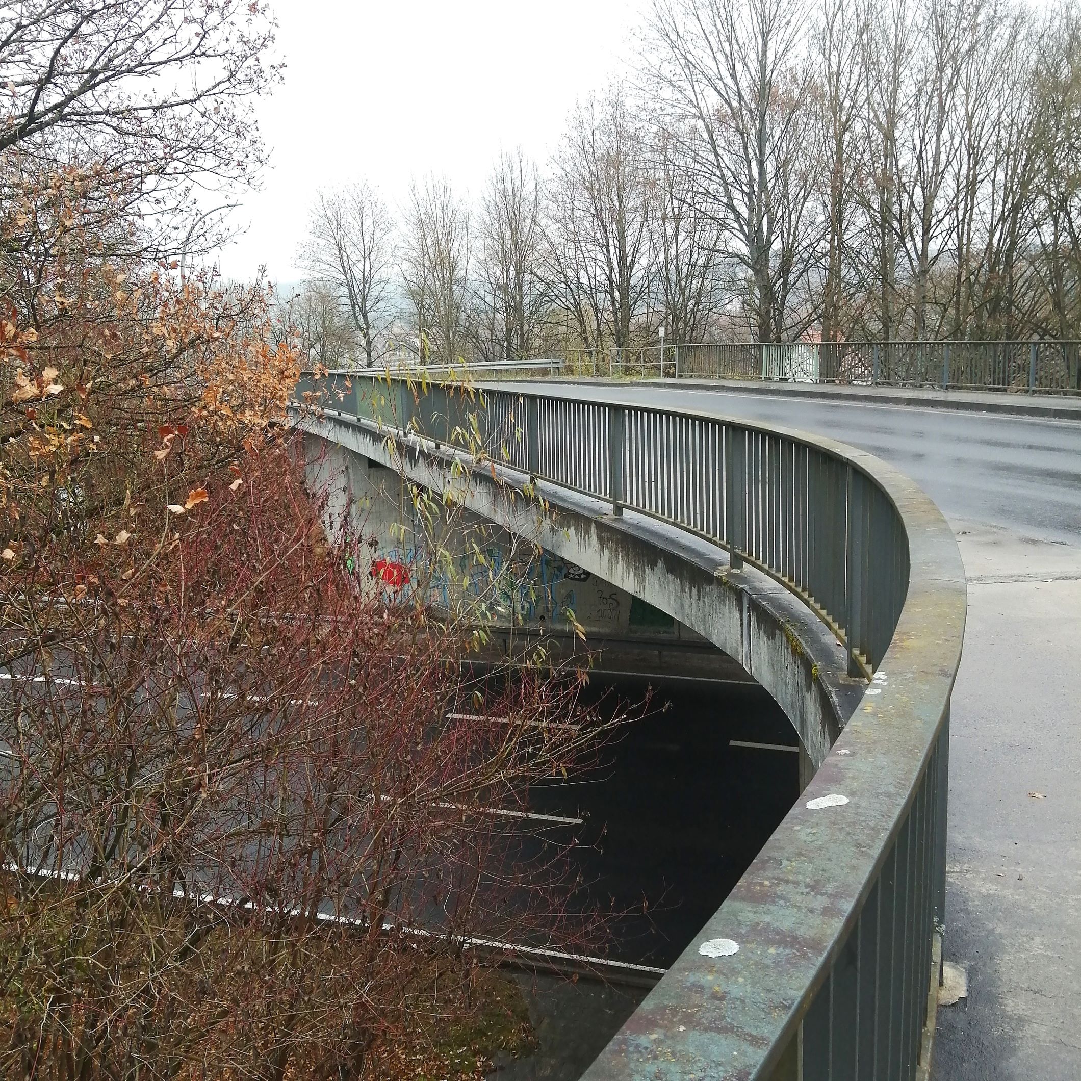 Die Fahrzeugbrücke in der Birkachstraße (Vordergrund) sowie die Fußgängerbrücke in der Unteren Steigstraße (Hintergrund) werden nach Informationen des Staatlichen Bauamts erst 2026 generalsaniert, um zusätzliche Verkehrsbehinderungen zu vermeiden. (Foto: Tina Göpfert)