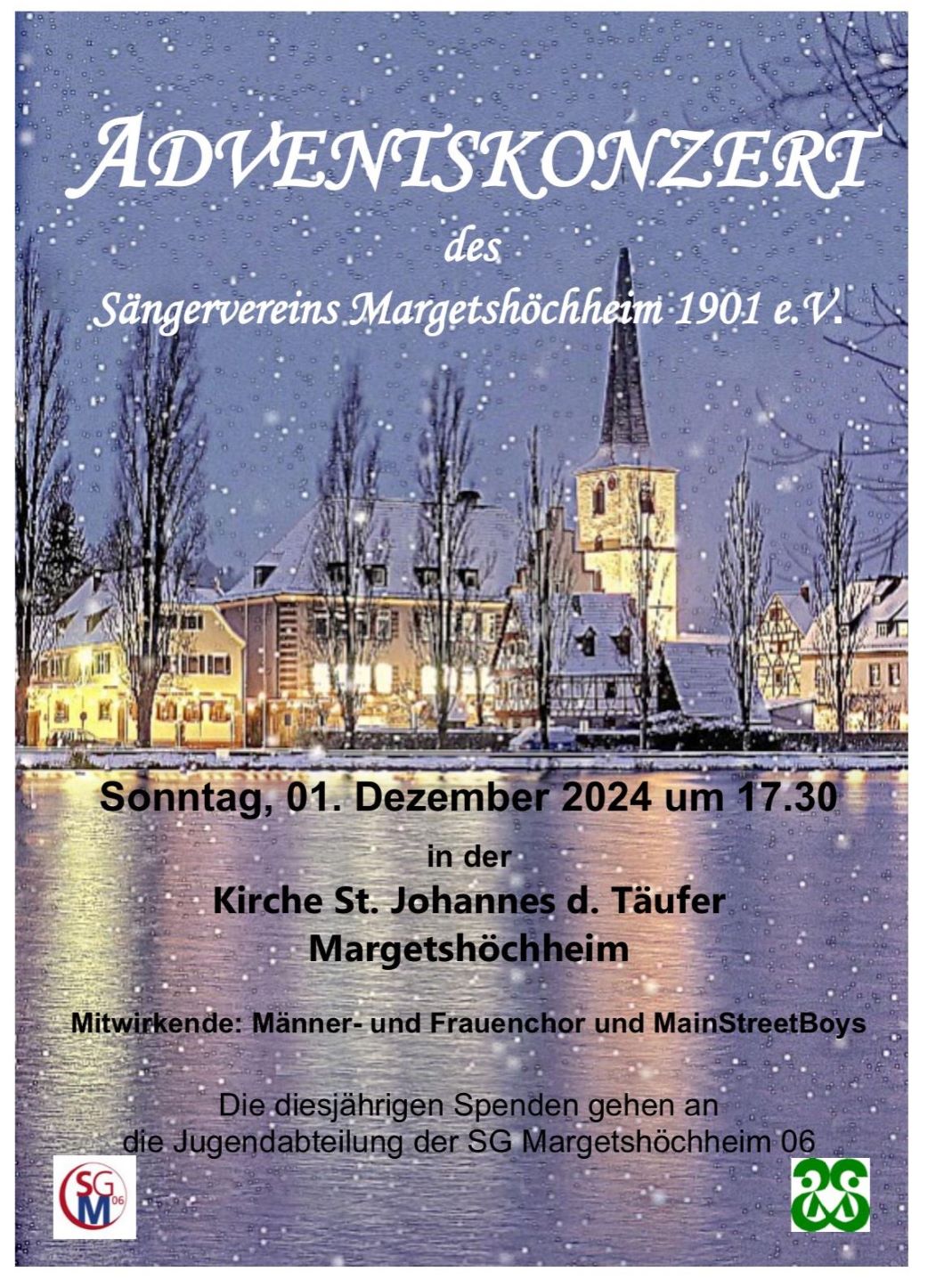 Alle Chöre des Sängervereins veranstalten am 1. Dezember ein Weihnachtskonzert in der kath. Pfarrkirche. Anschließend gibt es Glühwein und Punsch im Rathaushof.